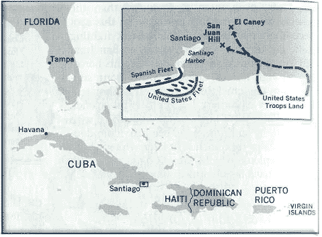 With Spain forcing the issue, the undertrained American soldiers were dispatched from Tampa. The initial aim was to prevent the Spanish forces at Santiago from coordinating actions with the bulk of their existing forces in the west.